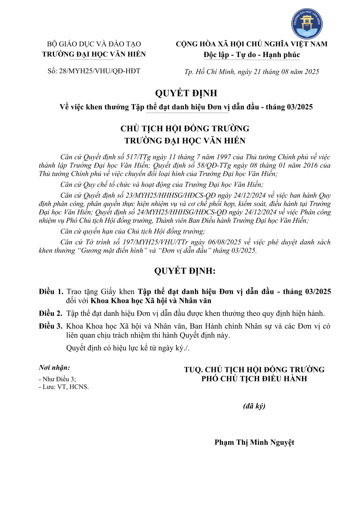 ◦ Quyết định về việc khen thưởng giảng viên có thành tích nghiên cứu khoa học trong năm học 2023-2024 và năm học 2024-2025 21 tháng 11 năm 2025